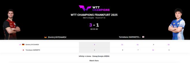 北京时间11月7日,WTT法兰克福锦标赛男单16强赛,张本继和以1-3不敌奥恰洛夫。四局比赛比分分别为8-11、7-11、11-8、6-11。这位37岁的老将完成了一场超级令人惊讶的比赛。日本乒坛长子连续第二次进入16强。奥恰洛夫是37岁的德国老将,世界排名第31位。他的WTT胜率只有54%。张本今年22岁,世界排名第四。 WTT的胜率达到76%。张本在年龄、体能、力量和敏捷方面都有优势。因此,在本场比赛之前,日本媒体预测张本将晋级八强,而不会像蒙彼利埃那样留在16强。没想到,第一局比赛一开始,这两个人就打了一场非常漂亮、非常胶着的比赛,1-1、2-2。张本志贺未能扩大分差。 37岁老将守住比分,张本继和8-7领先,奥恰洛夫追至8-8,奥恰洛夫连续两分以10-8拿下局点。石川张本失误,石川张本8-11输掉第一局。第二局比赛开始,张本杰和2-0领先,但奥恰洛夫很快追至2-3。奥恰洛夫以4-3领先。从那一刻起,张本鹿一似乎出现了精神失衡的问题。奥恰洛夫以10-5直接拿到局点。此后张本继和开始苏醒,以6-10、7-10落后,但奥恰洛夫拿下关键分,以11-7拿下第二局。第三局比赛开始,志贺张本3-2领先。这场比赛对张本来说是一场悬念。他们终于摆脱束缚,开始猛烈进攻,保持8-4的领先优势。奥恰洛夫将比分追至7-9,张本继和以11-8获胜。第四局,张本继和3-1开局,奥恰洛夫追至3-4,随后奥恰洛夫6-4领先。奥恰洛夫连进两球后,已经8-4领先张本继和。张本志贺 4-9 失误。奥恰洛夫10-5拿到赛点。最终,37岁老将以11-6获胜。